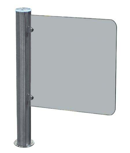 El movimiento se realiza mediante un motor de corriente continua y la configuración / ajuste se puede hacer sobre el par. Después de recibir la señal de apertura el sistema abre la puerta de cristal o tubular (90º) en la dirección de pase. Al cabo del tiempo configurado o mediante el pulso de cerrar, la puerta cierra en la posición inicial. La puerta queda bloqueada en los pasajes no autorizados. En caso de emergencia, la puerta pasa a modo libre.